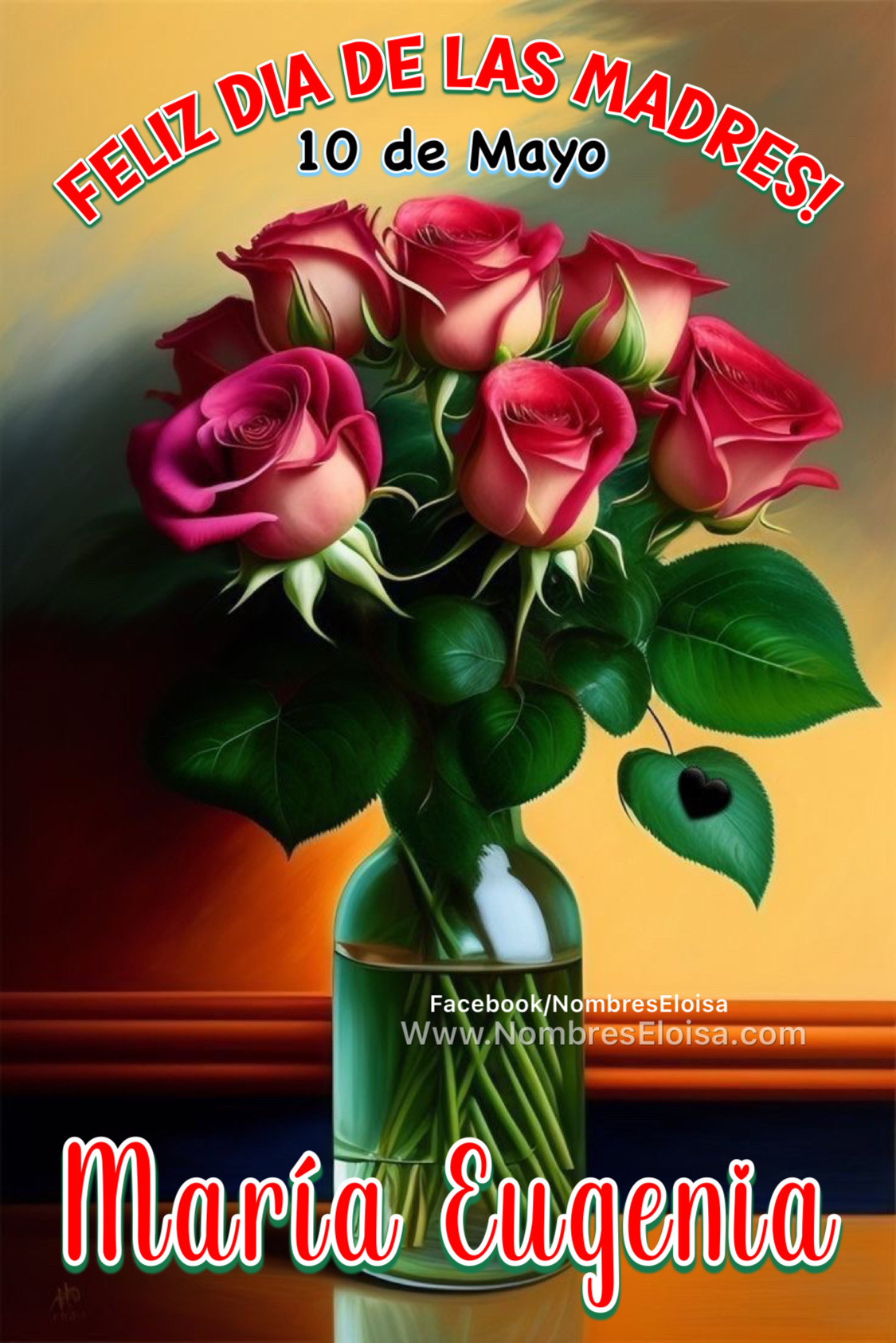 Florero con Rosas para el dia de las Madres (Nombres)