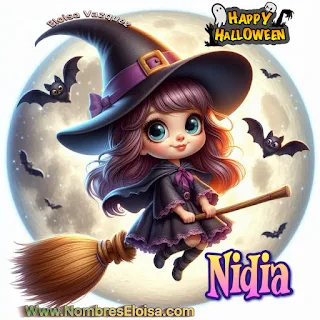 Brujita volando sobre la luna con Nombres (Aqui gratis)